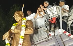 – डॉ.बाबासाहेब आंबेडकर यांच्या महापरिनिर्वाण दिनानिमित्त आयोजित कार्यक्रमाला सर्व पक्षांचे आमदार, खासदार तसेच विविध सामाजिक संघटनांचे मान्यवर मोठ्या संख्येने उपस्थित होते. कार्यक्रमाला आंबेडकर घराण्याचे वंशज आणि वंचित बहुजन आघाडीचे युवा नेते श्री. सुजात दादा आंबेडकर हेही उपस्थित राहिले. त्यांच्या हस्ते समारोप समर्पण सोहळा पार पडला.