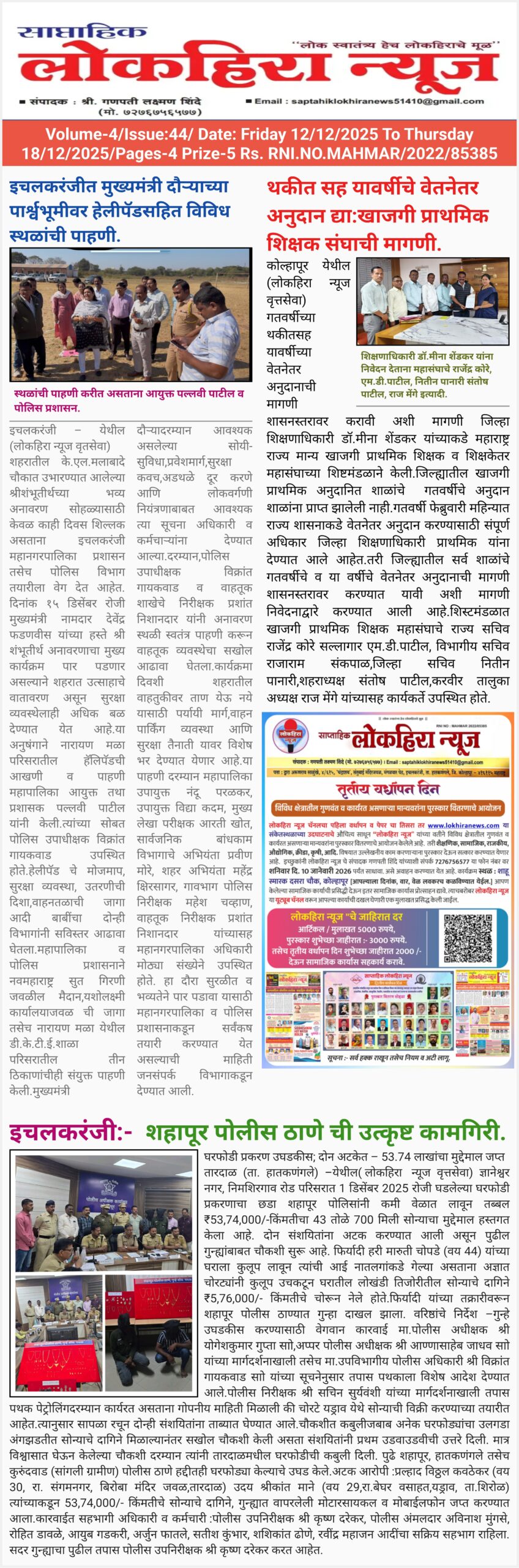 साप्ताहिक लोकहिरा न्यूज चा ई पेपर