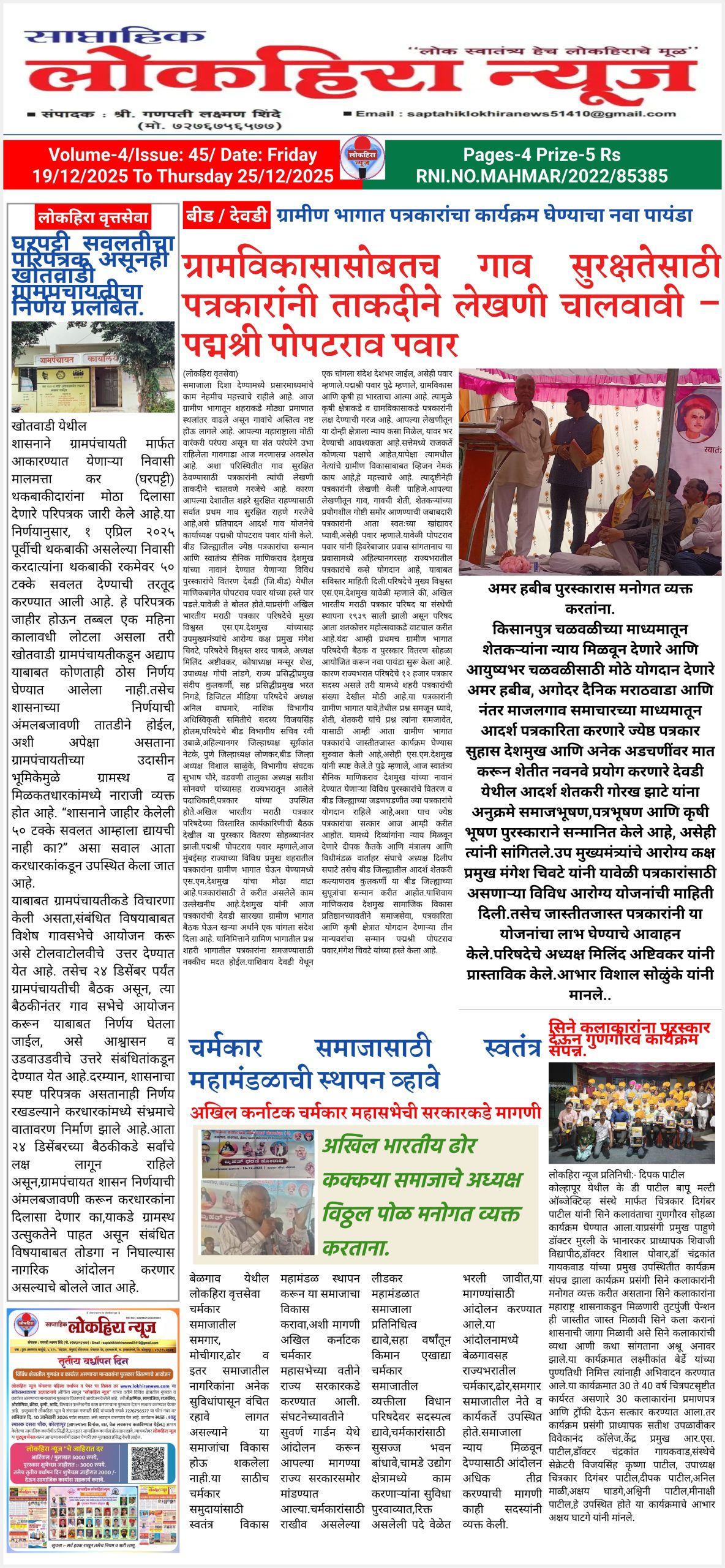 साप्ताहिक लोकहिरा न्यूज व लोकहिरा न्यूज चैनल तसेच