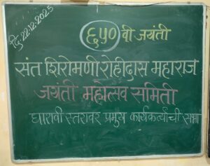 त्याचाच एक भाग म्हणून धारावीतील चर्मकार समाजातील सक्रिय असणाऱ्या प्रतिनिधिक कार्यकर्त्यांची बैठक दिनांक 22 डिसेंबर 2025 रोजी सायंकाळी सात वाजता स्थळ श्री गणेश विद्यामंदिर हायस्कूल धारावी या ठिकाणी आयोजित करण्यात आली होती यावेळी प्रमुख मार्गदर्शक म्हणून श्री विजय गोपाळ इंगळे यांनी निमंत्रित करण्यात आले होते श्री इंगळे यांनी पूर्वपार चर्मकार समाज बहुजन समाज आणि संत महात्मे यांचा इतिहास कार्यकर्त्यांसमोर मांडून सध्या सर्व चर्मकार समाजातील घटकांनी एकत्र येऊन सरकार दरबारी आपल्या मागण्या अडचणी आणि बेरजेचे राजकारण करण्याकरिता एकत्र येऊन संघटित ताकद दाखवून येत्या एक फेब्रुवारी 2026 रोजी होणाऱ्या संत शिरोमणी रोहिदास महाराज यांच्या 650 व्या जयंती महोत्सवाची जोरदार तयारी व शक्ती प्रदर्शन करून सरकारला दाखवून द्यावे जेणेकरून चर्मकार समाजातील प्रमुख मागण्या अडचणी व अपेक्षा पूर्ण करण्याकरिता सरकारला भाग पाडून दखल घेण्यास आपणाला बेरजेचे राजकारण करावे लागेल याबद्दलची मौलिक मार्गदर्शन त्यांनी केले पण त्यासाठी समाजातील प्रमुख कार्यकर्त्यांनी पुढाकार घेऊन समाजाला जागृत केले पाहिजे असे आवाहन केले यावेळी सभासदांनी चर्मकार समाजातील ज्येष्ठ समाज कार्यकर्ते  दिलीप गाडेकर  राम कोकणे, नवनाथ शिंदे, शकर संनटि, सूर्यकांत चौगुले आणि सूर्यकांत इंगळे उपस्थित होते सुरुवातीला सभेच्या सुरुवातीला नवनाथ शिंदे यांनी बैठकीचा उद्देश व नियोजन याबद्दल माहिती दिली त्या नंतर सूर्यकांत चौगुले यांनीही माननीय मुख्यमंत्री यांच्याकडे चर्मकार समाजातील अडीअडचणी व प्रश्न 19 समस्या मागणी पत्र सादर केले त्याचे वाचन हि केले कार्यक्रमाच्या मध्यावर समाजातील कार्यशील व विविध पुरस्कार प्राप्त केलेल्या श्री सूर्यकांत इंगळे व दिलीप नारद यांचा शाल श्रीफळ देऊन मान्यवरांच्या हस्ते संत रोहिदास पायी दिंडी मंडळ धारावी यांच्यातर्फे सत्कार करण्यात आला कार्यक्रमाच्या शेवटी उपस्थित सर्व चर्मकार समाज घटकांचे आभार मानले यावेळी सविता शेरखाने, अलका साबळे, गणेश खेडेकर, शंकर खिल्लारे यांचे ही सहकार्य लाभले राष्ट्रगीताने कार्यक्रमाच्या समारोप करण्यात आला