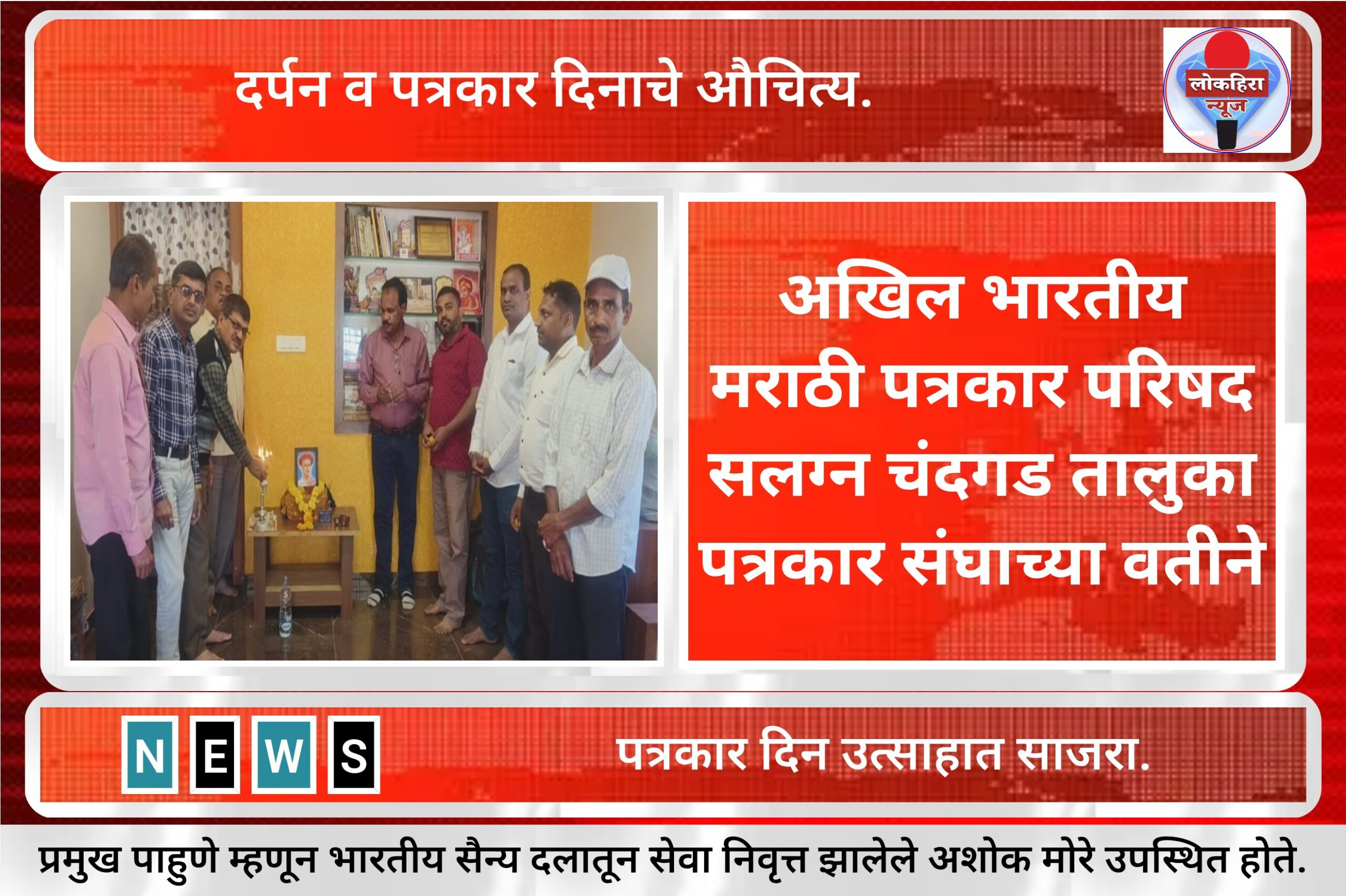 दर्पन व पत्रकार दिनाचे औचित्य साधून आज ६ जानेवारी रोजी अखिल भारतीय मराठी पत्रकार परिषद सलग्न चंदगड तालुका पत्रकार संघाच्या वतीने पत्रकार दिन उत्साहात साजरा करण्यात आला. कार्यक्रमाला प्रमुख पाहुणे म्हणून भारतीय सैन्य दलातून सेवा निवृत्त झालेले अशोक मोरे उपस्थित होते.