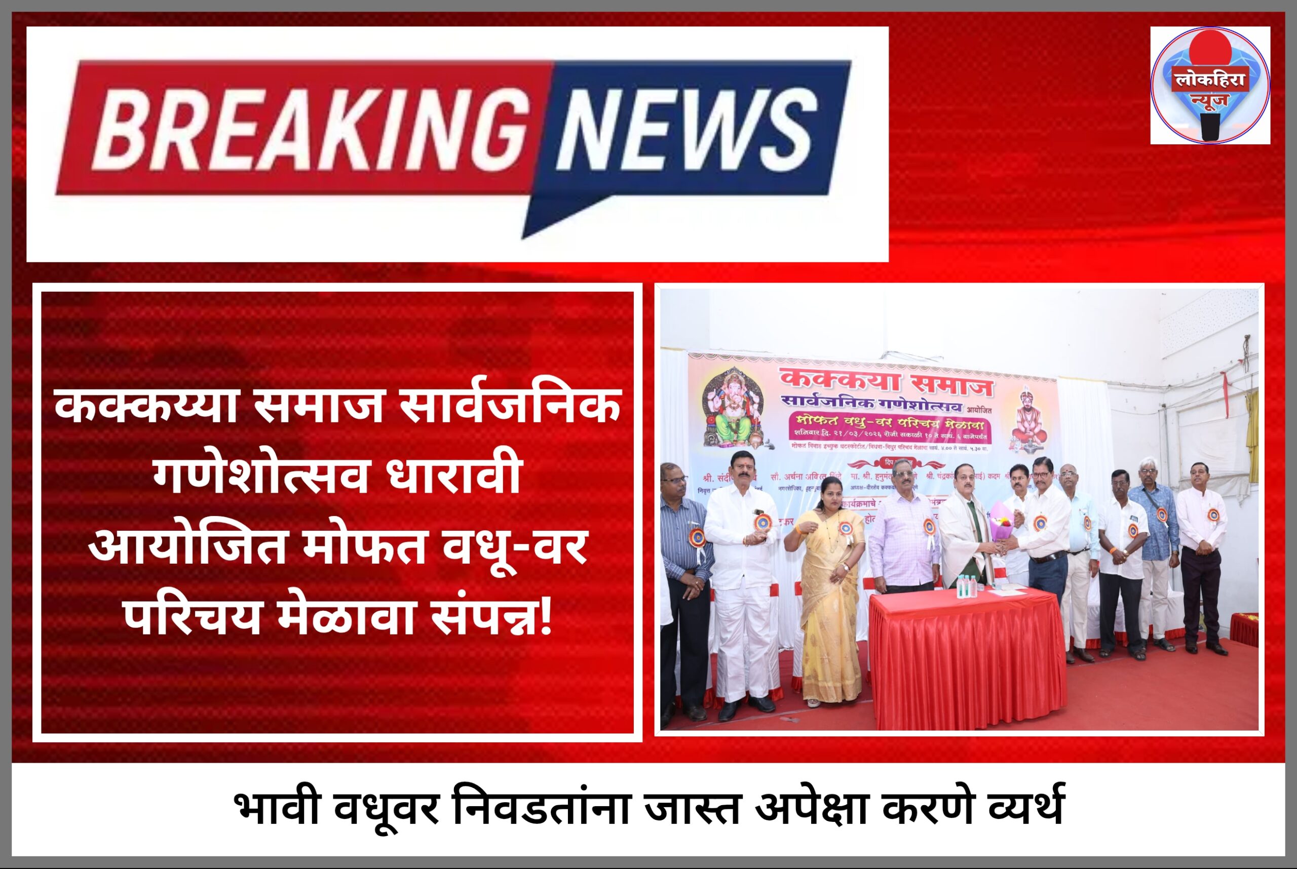 कक्कय्या समाज सार्वजनिक गणेशोत्सव धारावी यांच्या वतीने सायन येथील डि. एस हायस्कूल मध्ये मोफत वधू -वर परिचय मेळावा दिनांक २१ मार्च २०२६ रोजी आयोजित केला होता.यावेळी सौ अर्चनाताई शिंदे (नगरसेविका ), श्री ना. म शिंदे (जेष्ठ साहित्यिक ), शिवलिंग व्हटकर (अध्यक्ष संत कक्कय्या समाज विकास संस्था धारावी ), राम कोकणे (अध्यक्ष समस्त कक्कय्या समाज महासंघ मुंबई ), महादेव शिंदे (अध्यक्ष वीर शैव कक्कय्या कल्याण मंडळ ),सौ. कांता तपासे (अध्यक्ष डोंबिवली मंडळ ),अशोक पाटेकर (सचिव वीर शैव कल्याण समाज मंडळ वेरूळ ), संदीप कळंबे (निवृत्त उपजिल्हाअधिकारी मुबंई ), शशिकांत सोनवणे(प्रवक्ता समस्त कक्कय्या समाज महासंघ )यांच्या उपस्थित हा वधू -वर परिचय मेळावा उदंड प्रतिसादात संपन्न झाला. यावेळी समाज बांधव मोठया संख्येने उपस्थित होते.