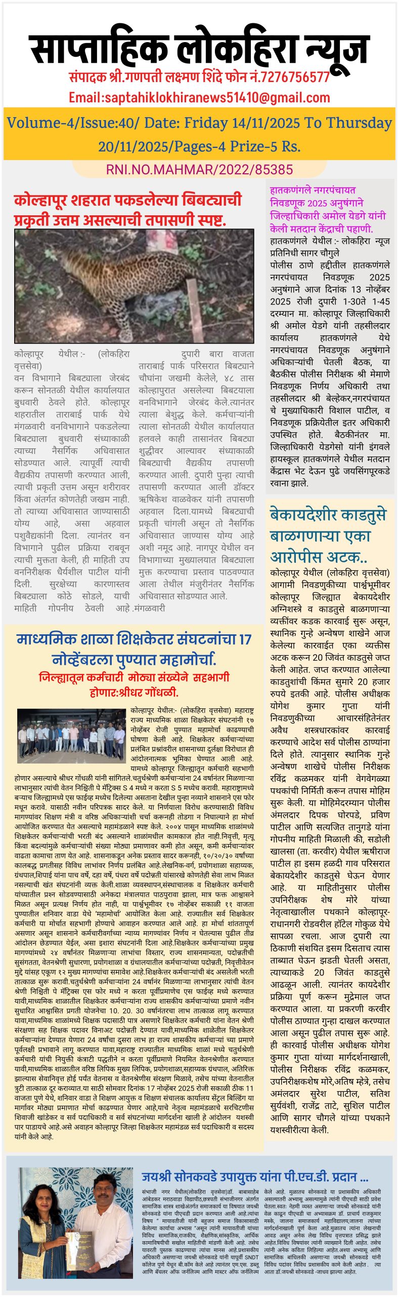 साप्ताहिक लोकहिरा न्यूज चे मुखपृष्ट .