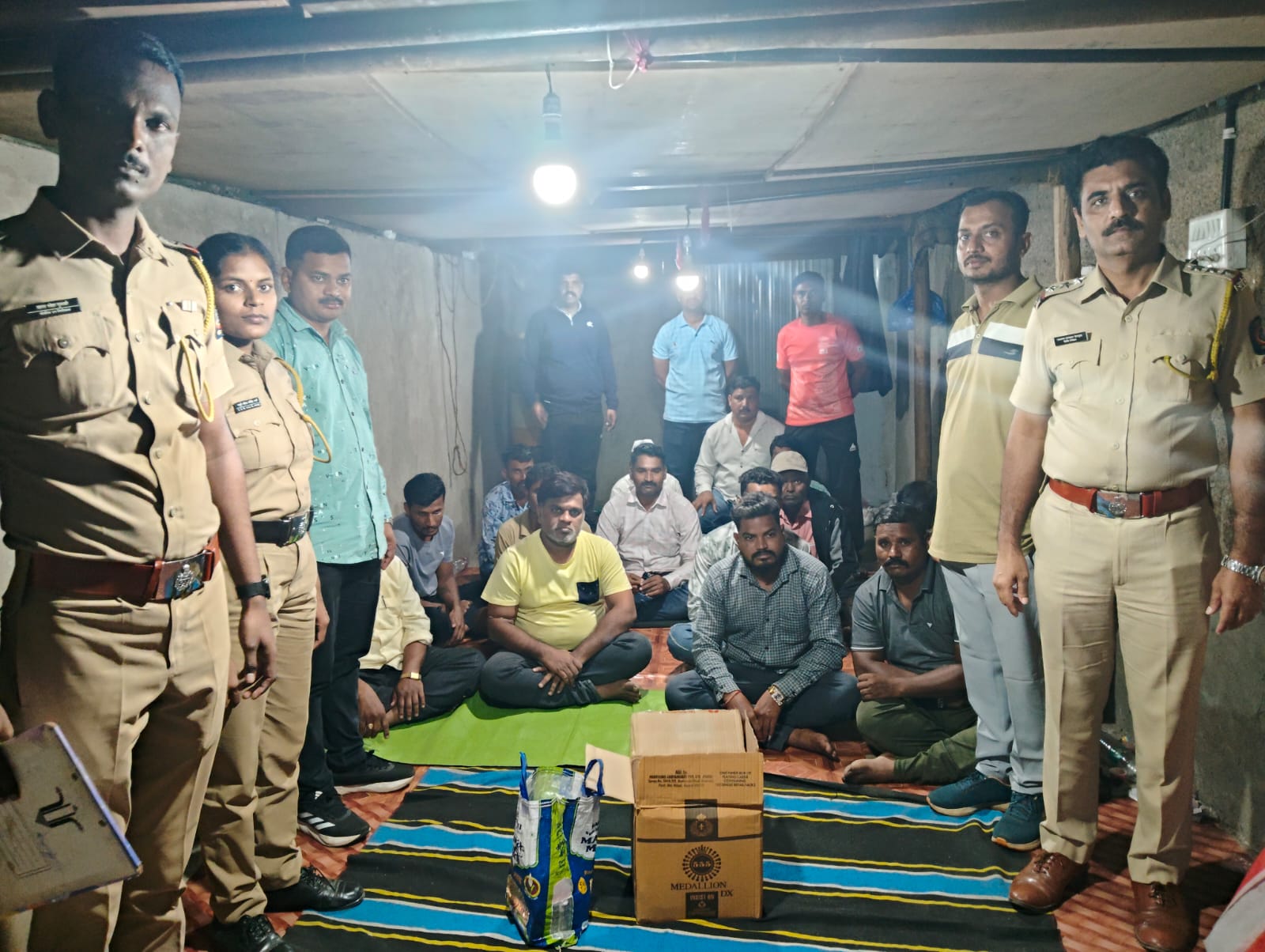 मार्केट यार्ड परिसरातील राजीव गांधी वसाहतीतील एका खोलीत सुरू असलेल्या तीनपत्ती जुगार अड्ड्यावर अप्पर पोलिस अधीक्षक डॉ. धीरजकुमार यांच्या पथकाने छापा टाकत कारवाई केली. गुप्त माहितीनुसार केलेल्या या धाडीत जुगार खेळत असलेल्या १४ जणांना अटक करण्यात आली आहे. या ठिकाणाहून ₹२,८६,७४० किमतीचा रोख रक्कम, मोबाईल व मोटारसायकलींसह मुद्देमाल जप्त करण्यात आला.