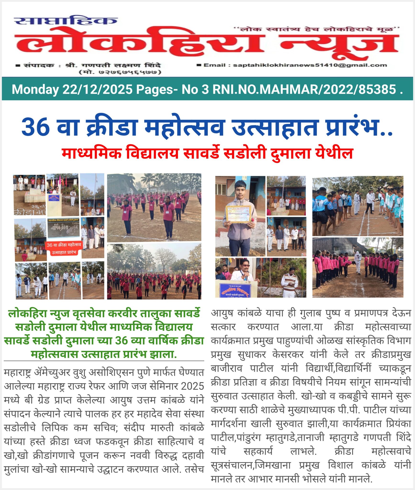 36 वा क्रीडा महोत्सव उत्साहात प्रारंभ…